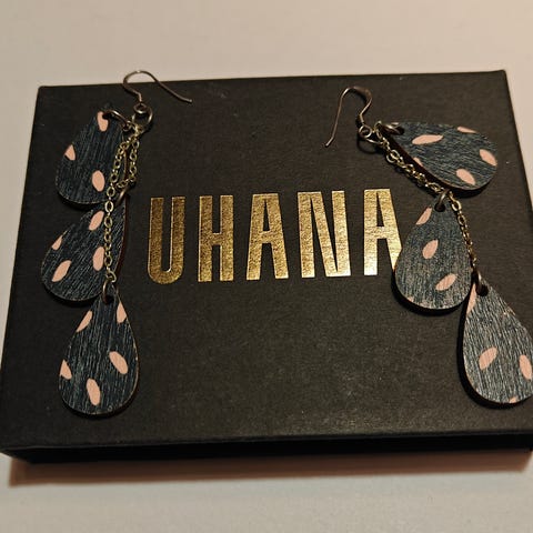 Myydään kauniit Uhana Design Pisara -korvakorut alkuperäisessä pakkauksessa.