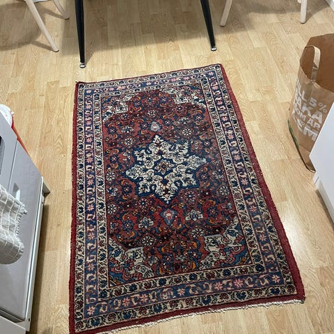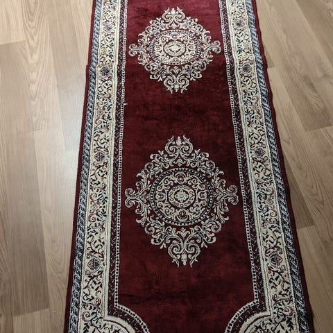 Myydään uusi ja käyttämätön egyptiläinen matto. Kaunis, punasävyinen kuosi perinteisillä kuvioilla. Materiaali vaikuttaa laadukkaalta ja kestävältä (todennäköisesti villaa tai villasekoitetta).
