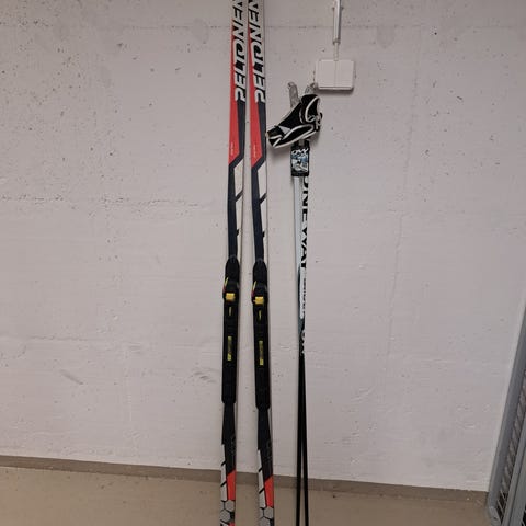 Käytetyt mutta uudenveroiset sukset(167cm) ja sauvat (115cm).