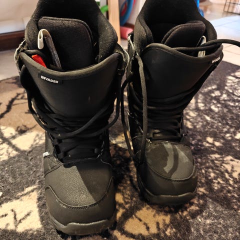 Hyväkuntoiset, vähälle käytölle jääneet lumilautakengät. Koko 31,5.