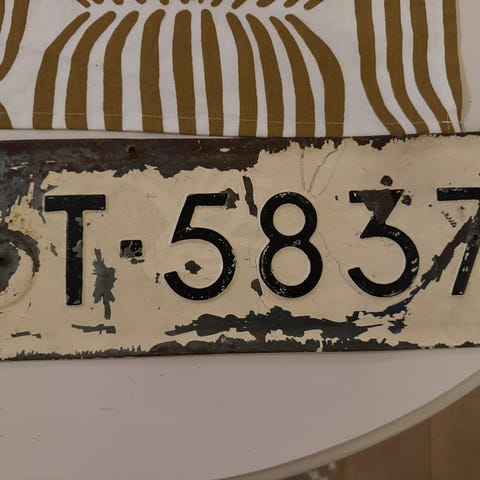 Vanha rekisterikilpi, ollut sisustuksessa. Sopis vaikka talon numeroksi, jos täsmäis numero!
