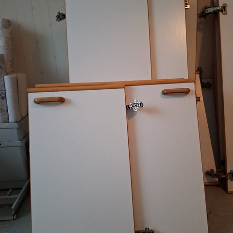 4 kpl uusia vaaleita keittiön kaapin ovia, ovet kokonaisia ja miksei ovista voisi tehdä vaikka hyllyjä, korkeus 715mm ja leveys 395mm, nämä jäi multa ylimääräiseksi. Hp. 20€ kpl tai 60€ kaikki 4. Ovi on valkosaarnia ja teetetty Lappeenrannan keittiökeskuksessa