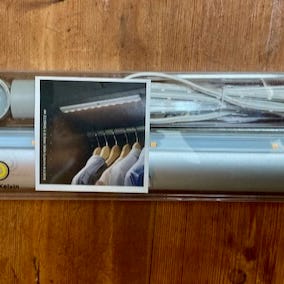 Varastossa ollut kaappivalo alkuperäisessä paketissaan.