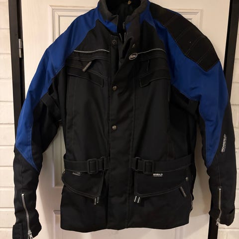 Ehjä, sinisalo ajotakki koko M/50. Hartia suojat on. Voin myös lähettää.