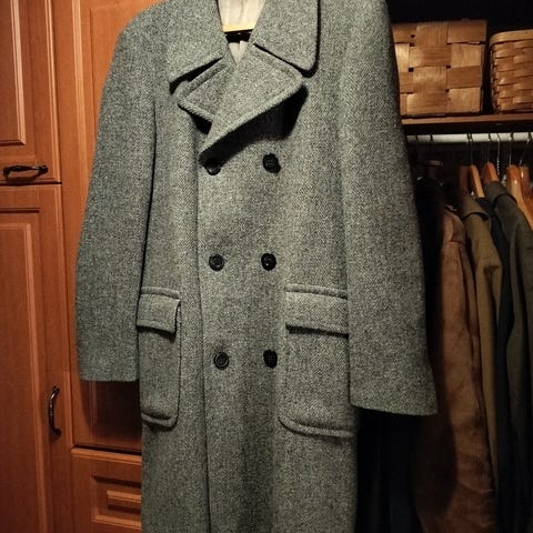Hieno räätälissä teetetty pitkä takki. Sopii S/M kokoiselle miehelle, mutta ei kovin harteikkaalle. Todella laadukas villakangastakki. Naiselle ei sovi, koska hihat ovat niin pitkät. Hinta nyt vain 45 euroa. Kaupat Tampereen keskusta