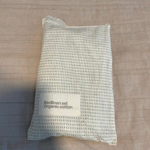 Kolme 100 % puuvillaa vauvan pussilakanaa ja tyynyliinaa sekä täkki.