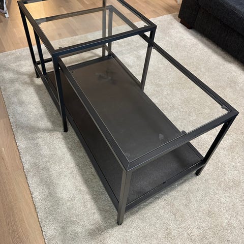 Uudenveroinen pari kuukautta vanha musta Ikean Vittsjö sohvapöytä
