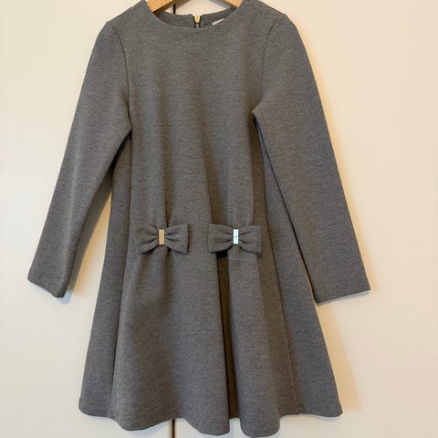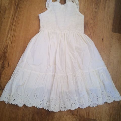 Kultaisin raidoin ja pitsein koristettua kauniisti laskeutuvaa ohittaa puuvillaa, vuoritettu, mekko on ollut enintään kolme kertaa päällä