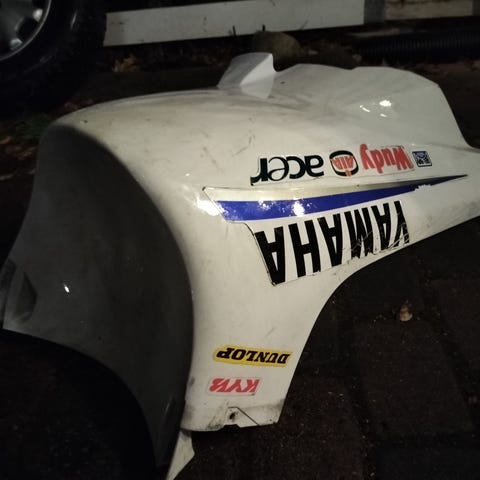 Joutilas ja ehjä Yamaha Aerox oikean puolen sivukate. Ollut kiinni vm-11 Roxissa.