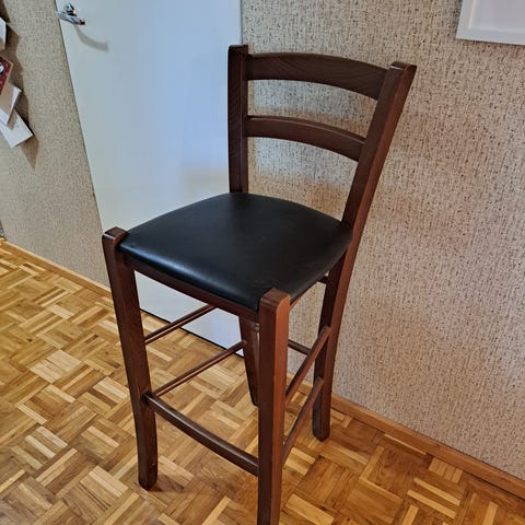 2 kpl puisia baarituoleja. Jotain käytön jälkiä löytyy, mutta yleisilmeeltään siistit tuolit.