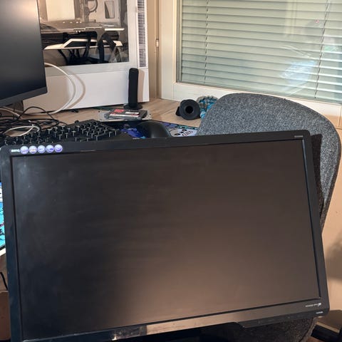BenQ GL2450 LCD-näyttö, 21 tuuman näyttökoko. Näytössä on HDMI- ja VGA-liitännät sekä äänitulo. Musta väri ja muovinen runko. Soveltuu tietokoneen näyttöön.