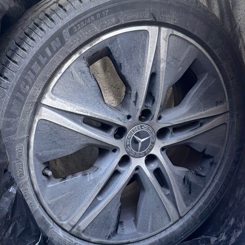 Hyväkuntoiset kesärenkaat lähes virheettömillä MB-alkuperäisvanteilla. Koko setti vain 1600€.