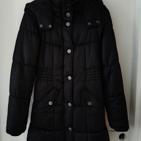 käytetty musta pitkä talvitakki, hyväkuntoinen.
