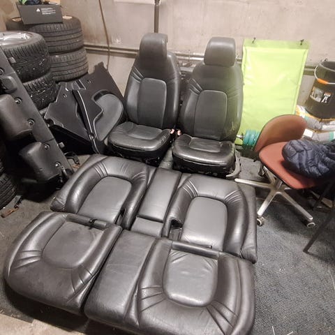 Kuvan takapenkki jossa selkänoja saranoitu lattiiaan, en tiedä varmalsi mutta epäily että saabista. Koko leveys n 130 cm ja selkänojan peltiosuus kapeimmillaan n 100 cm. Nokialla