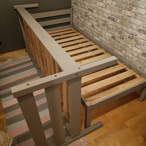 On ollut vierassänkynä, mutta lähinnä daybed-käytössä. Vahvarunkoinen sänky. Ainoastaan nouto Kruunuvuorenrannasta. Autolla pääsee ihan oven lähelle. Lemmikkieläimetön ja savuton talous.