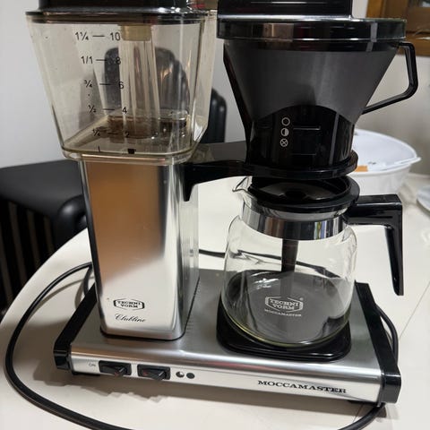 Vähän käytetty ja itselle tarpeettomaksi jäänyt Moccamaster 1,25l vesisäiliöllä, automaattisella tippalukolla, automaattisella virrankatkaisulla.