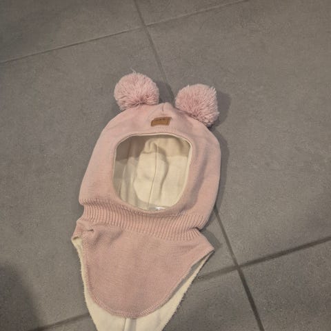 Metsolan nallekorvainen kypäralakki. Meillä oli n. 2 vuotiaana sopiva. Ei ole purtu/syöty leukaosaa.