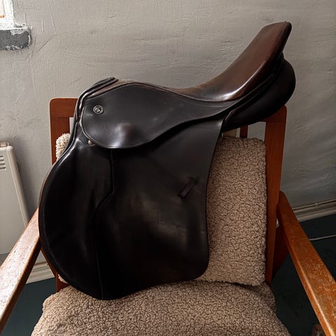 Siisti ja hyvä, moneen selkään, varsinkin isosäkäiselle sopiva estesatula, leveys MW/M. Ostettu kesällä -25 Satula.comista josta kuitti (700€). Marraskuussa topattu, muokattu ja runkotarkastettu vielä 411€:lla (kuitti tästä olemassa). Runko on malliltaan suora, hieman taakse nouseva, antaa reilusti tilaa säälle ja selkärangalle. Hyvät tuet jalalle ja leveys muokattavissa portaattomasti.