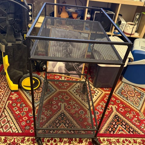 Kultainen tarjoiluvaunu. Sopii esimerkiksi sohvapöydäksi.
