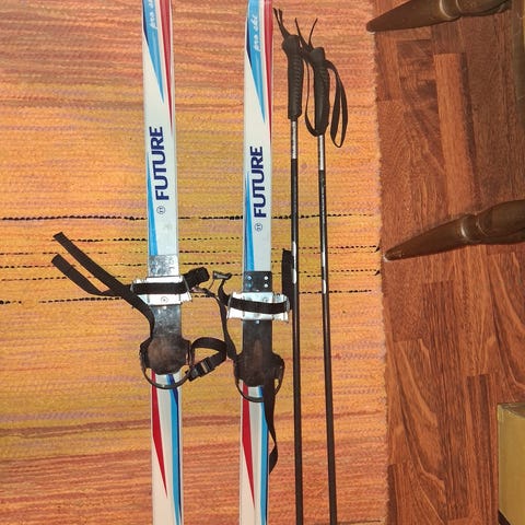 Myydään lasten ensisukset 110cm + sauvat 90cm.