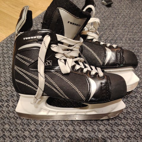 Toronto lasten jääkiekkoluistimet koko 38 musta väri. Luistimet on hyväkuntoiset, ehjät ja vähällä käytöllä olleet ja terät hyvässä kunnossa. Pientä käytön jälkeä varpaiden kohdalla ja nauhat ovat hieman rispaantuneet päistä.