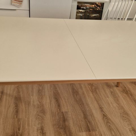 Myydään jatkettava ja hyväkuntoinen Vepsäläiseltä ostettu BoConcept Milano ruokapöytä. Pöytälevyn väri valkoinen ja pinnan materiaali kulutusta kestävää materiaalia. Runko ja jalat umpi tammea. Jatkopala taittuu kätevästi pöydän alle piiloon ja päätylevyt rullaavat kevyesti laakereilla. Levyt lukittavissa toisiinsa pöydän alla. Toisessa päädyssä pieni lohkeama.
