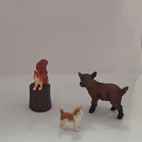 Schleich kirahvi naaras, vuosiluku 2003, kenguru emo ja poikanen, vuosiluku 2000, seepra naaras, vuosiluku 1998. Kaikki eläimet ovat hyväkuntoisia. Myydään kaikki yhdessä 16 e, tai yksittäin 6 e/kpl