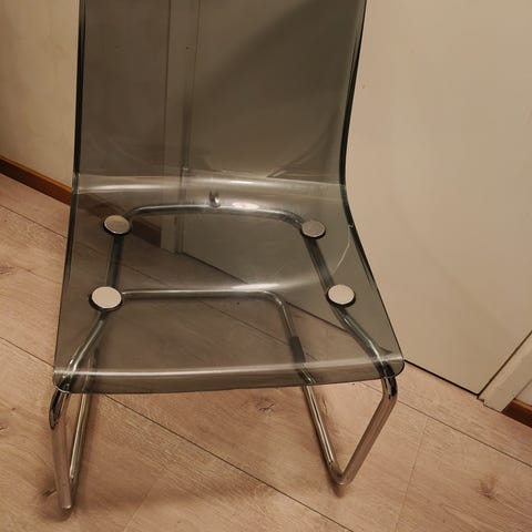 Muuten siistissä kunnossa, mutta kahdessa tuolissa selkänojissa pienet raot (katso kuvat).