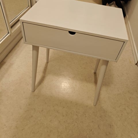 Hyvässä kunnossa oleva yöpöytä! Pöydässä ln langaton latauspaikka, sekä laatikon sisälle saa usb johdon.
