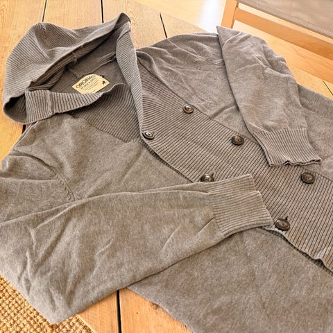 Harmaa 100% puuvillaneuletakki miesten M-koko