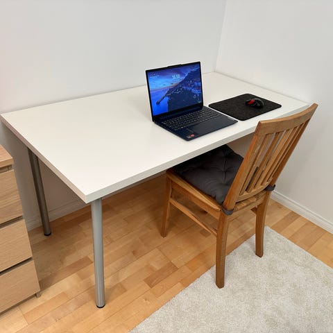 Pöytä on vähän kavennettu pitkältä sivulta, ollut alunperin 80cm syvä.