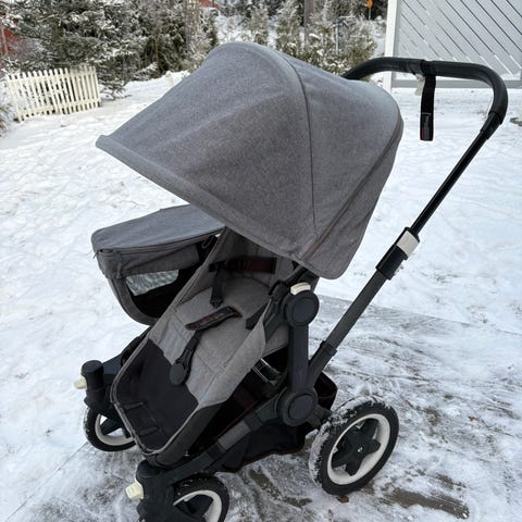 Bugaboo donkey duo 3 tuplarattaat mustalla värillä, mutta käytössä haalistunut enemmän ruskeaksi etenkin kuomu osat. Runko on tosiaan 3 mallia, mutta toinen istuin taitaa olla mallia 2. Tässä ei oo mukana koppaosaa, eli on vaan istuimet ja sivukori. Kuomut on huonossa kunnossa/rikki joten suosittelen niihin hankkimaan uudet. Ite oon kuitenki pärjänny näillä. Oon pessy kaikki pinnat ja kankaat, joten rattaat on puhtaat, mutta kulumaa on esimerkiksi työntöaisan nahkaosissa. Nekin voi vaihtaa jos haluaa.