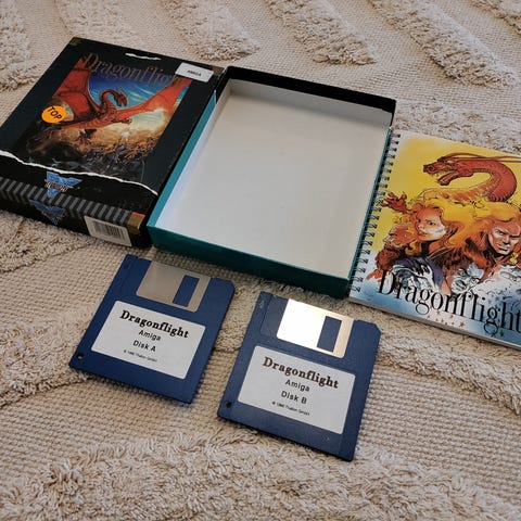 Big box-versio Amigan pelistä. Tallennusdisketti mukana. Kotelon kannessa pieniä painaumia, yleisilmeeltään oikein ryhdikäs. Ei testausmahdollisuutta, mutta levyt vaikuttavat siistiltä. Viettänyt viimeiset 20+ vuotta lämpimässä ja kuivassa varastossa.