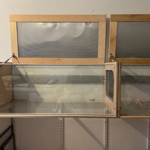 Valmis paketti gerbiileille ja muille pienjyrsijöille. Terraarion koko 95x40x45 ja tason mitat 124x47,5x55.