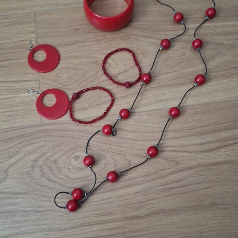Myydään rannekoru ja kaulakoru samaa sarjaa.