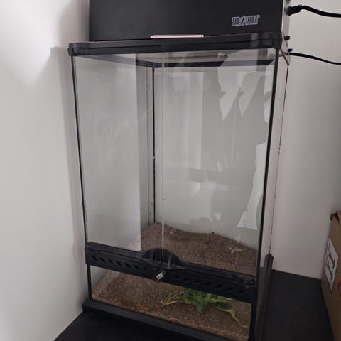 Ehjä ja siisti terraario. Exoterran omalla lampulla. Lämpömatto mukaan.