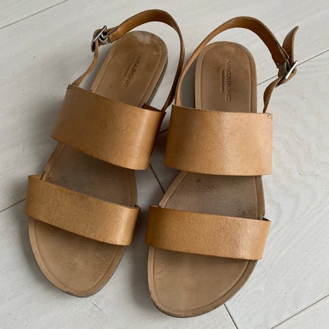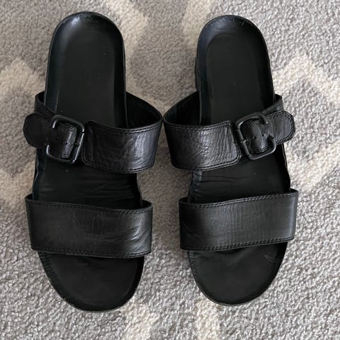Hyvässä käytetyssä kunnossa, pohjiin laitettu lisäksi liimattavat tuet päkiän ja kantapään kohdille.