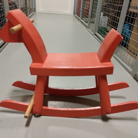Lastenhuoneen klassikko, punainen Jukka-lelun puinen keinuhevonen. Käytönjälkiä pinnassa, mutta kuitenkin siisti ja hyväkuntoinen. Koirakoti, voi noutaa joustavasti Kannelmäestä.