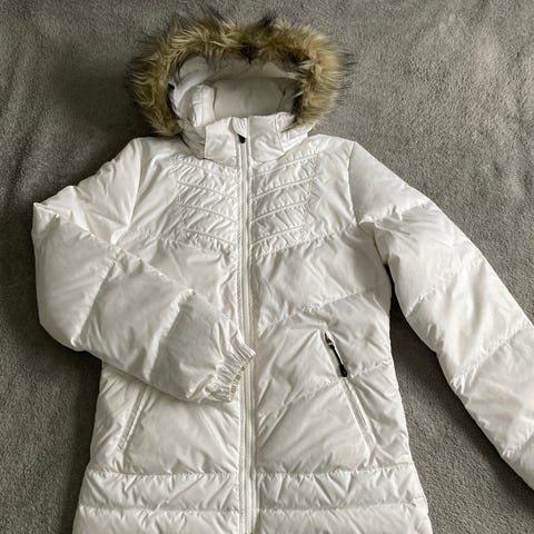 Takki on muhkea ja lämmin, täyte on 75% untuvaa.