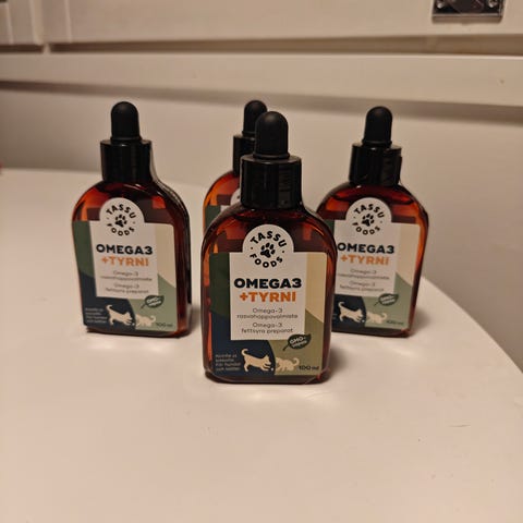 TassuFoods Omega-3 +tyrni rasvahappovalmiste 2kpl sekä LovePaws- tassuvaha(suojaa mm. pakkaselta). Omega-3 ovat avaamattomia ja toinen tassuvaha avattu(koira menehtynyt ja siksi jäänyt nyt vaille käyttöä). Erikseen Omega-3 yksi purkki 10€, LovePaws avaamaton 5€(avattu kaupan päälle). Kaikki yhdessä 20€.