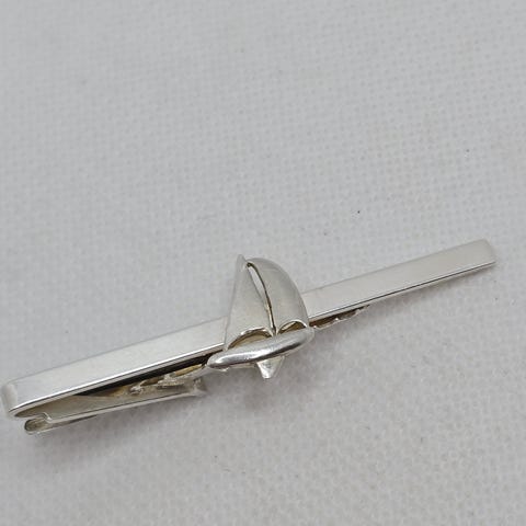 Tyylikäs ja harvinaisempi hopeinen solmioneula, jossa on ritaria tai keskiaikaista hahmoa esittävä kohokuvioinen muotokuva.