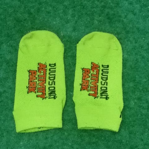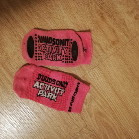 Vihreät M kokoa. Toisissa pieni reikä. Mustat L.