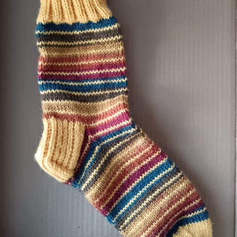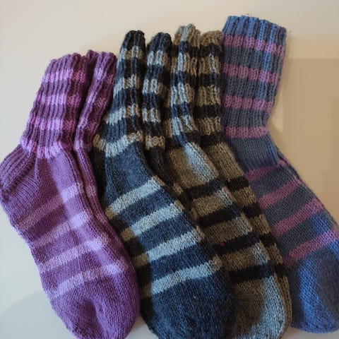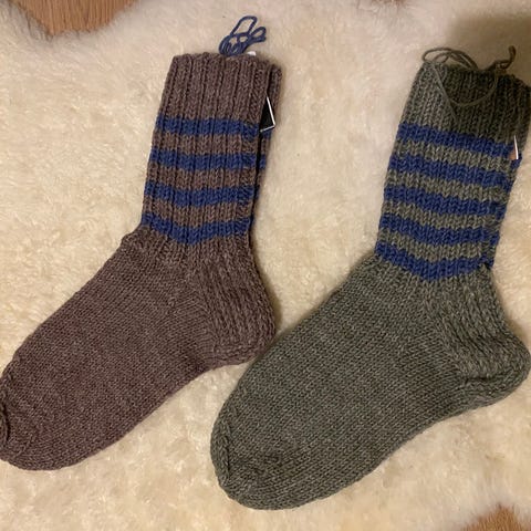 Miesten pitkävartisia lämpimiä villasukkia. Kanta-kärki mitta 27cm.