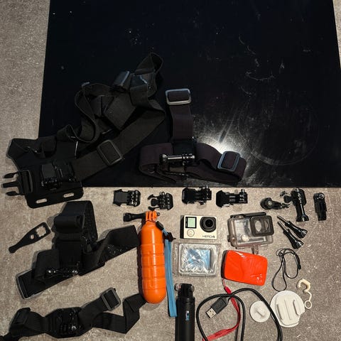 Myydään tarpeettomana kattava GoPro Hero 4 -setti. Kamera on ollut käyttämättömänä viimeiset 5 vuotta, mutta se on säilytetty siististi sisätiloissa.