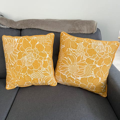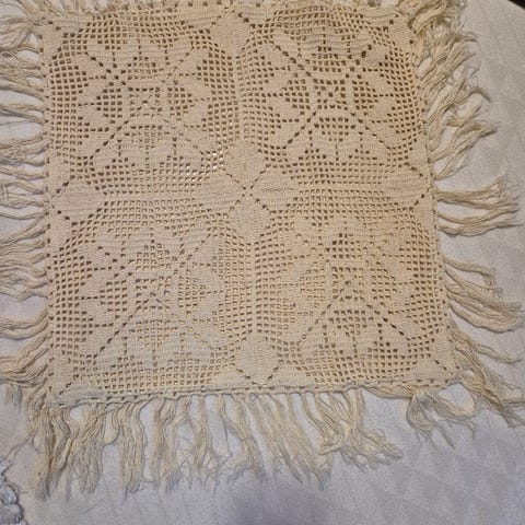 Kaksi virkattua tyynynpäällistä, jotka on ommeltu kiinteästi kiinni. 20€ yhteensä.
