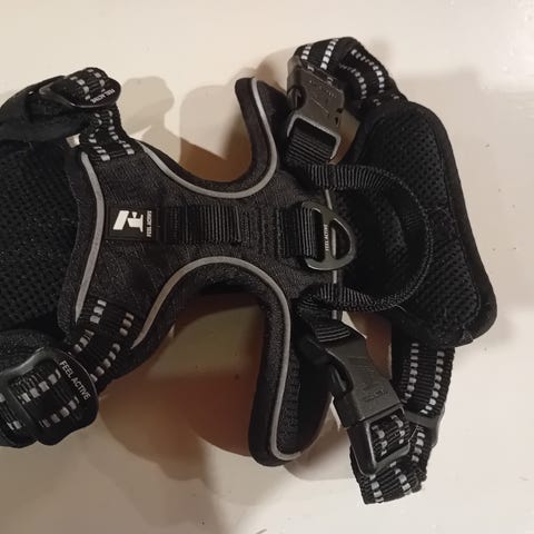 Myydään erittäin hyväkuntoiset koiran valjaat. Kunto on uutta vastaava muuten, mutta metalliosasta on lähtenyt vähän maalia (kuva 3.). Nämä ovat olleet vähällä käytöllä. Sopivat pienehkölle koiralle. Meillä japaninpystykorva. Tarkemmat mitat tulossa. Ovh. 24,99 e. Malli on tämä: