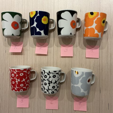 Hyväkuntoiset Marimekko Unikko kahvikupit ja asetit 2000-luvun alusta.