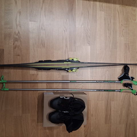 Varattu - Lasten suksipaketti - sukset 110, sauvat 80, monot 29