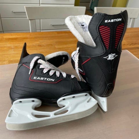 PULSE4 Jääkiekko luistimet, koko 33. Luistimissa musta väri ja valkoinen terä. Soveltuvat jääkiekkoiluun lapsille.