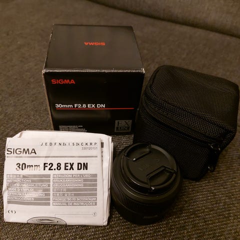 Sigma 30mm F2.8 DC DN objektiivi, joka tarjoaa valovoimaisen F2.8 aukon ja sopii erityisesti digitaalisiin järjestelmäkameroihin. Objektiivin polttoväli on 30mm, mikä tekee siitä monipuolisen valinnan erilaisiin kuvaustilanteisiin.